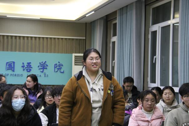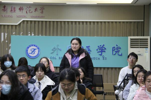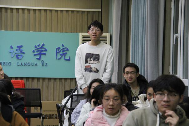 随后,同学们就雅思和专四的比较、知识储备、书籍推荐、笔记记录、赛事备赛、考研推免等问题与分享嘉宾进行了深入的沟通,二位嘉宾也根据自身学习特点、参赛经历给出了学习建议。现场交流环节,同学们积极提问,嘉宾据实作答,现场氛围热烈。