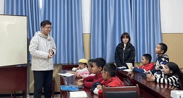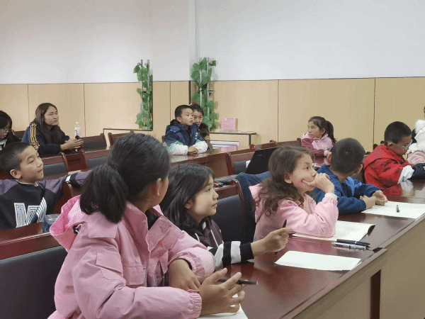 随后,志愿者们根据辅导计划开展了首期“石榴籽”小课堂。辅导活动以激发英语学习兴趣为出发点,以英语游戏和字母歌形式开场,引导孩子们通过自我介绍、单词学习、互动对话等内容,强化英语学习积极性,通过外语动画播放等方式让小学生们学到了英语知识,在寓教于乐的过程中,变得更加敢于表达、乐于交流,提升了沟通社交能力,同时锻炼志愿者的语言实践技能,现场氛围温馨和谐。