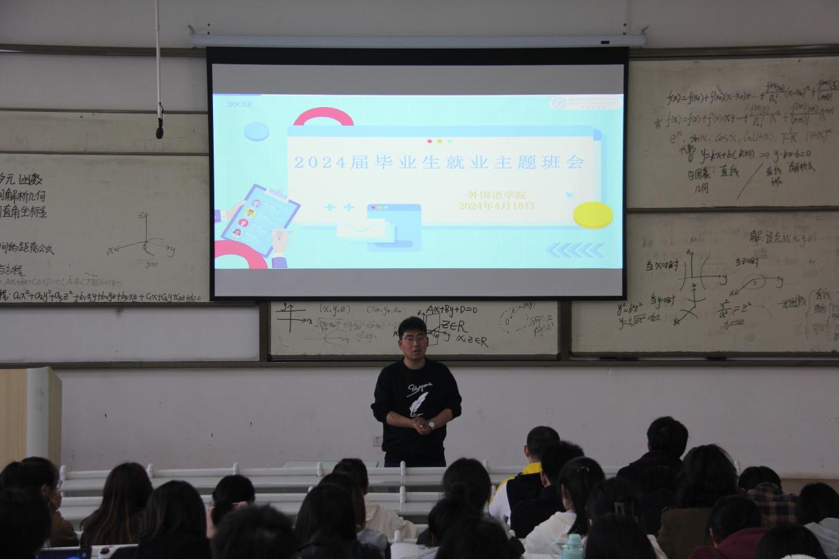 为深入贯彻习近平总书记关于高校毕业生就业工作的重要指示批示精神、落实教育部2024届全国普通高校毕业生就业创业工作网络视频会议精神,推进毕业生就业工作,营造学院“全员关注就业”的良好氛围,激发毕业生求职竞争积极性、择业就业主动性,太阳成集团tyc33455ccwww于2024年4月21日在三号教学楼104教室召开“2024届本科毕业生就业主题班会”,全体在校本科毕业生80余人参会。会议由学院学生工作办公室辅导员王平平老师进行分享。