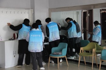 活动中,18名受助学生分4个组,分别对社区活动中心、图书室、多功能室、学习室进行清洁。受助学生身穿志愿者马甲,挽起袖子,充分发扬不怕苦、不怕累的志愿服务精神,分工明确、默契配合,在繁忙的课业之余积极投身于活动之中,完成了志愿服务任务。