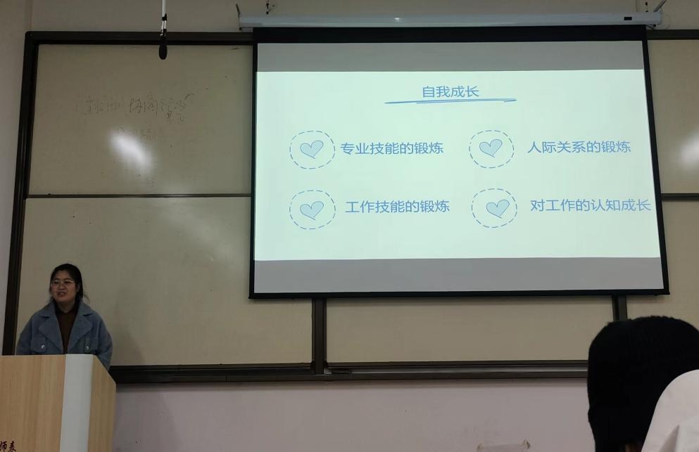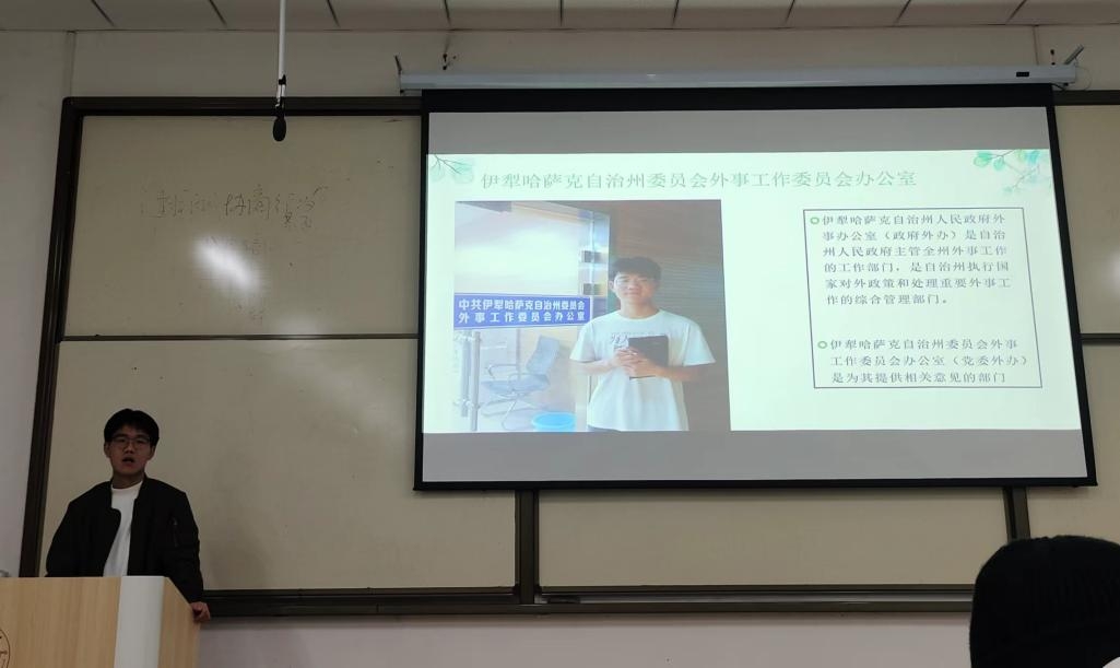 会议伊始,翻译专业20-7班班长闫明昭同学简单介绍各实习点的总体情况。随后,闫明昭、麻朋英、李英三位同学分别代表外事办公室实习小组、企业实习小组、西安译国译民实习小组详细汇报了在乌鲁木齐市外事办公室、乌鲁木齐市纵横翻译有限公司、乌鲁木齐市西北翻译有限公司、乌鲁木齐文化中心、华和国际商务咨询有限公司等10所实习单位的实习情况、收获与反思。接着,2021级同学针对实习中的困惑与2020级学生进行深入地交流。最后,班主任李娜老师对翻译专业2020级全体学生顺利完成实习表示祝贺,并充分肯定了同学们两个月的实习成果。同时,也希望2021级同学能够正确认识和对待翻译实习实践任务,积累专业知识储备,为今后的就业做好细致的规划。