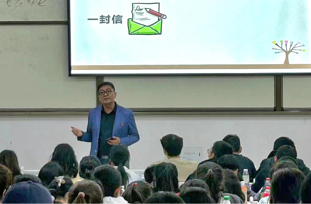 随后,冒慧荣老师以“做好大学规划,成就精彩自我”为题,聚焦大学生生涯规划,围绕什么是大学、规划的意义、大学生学习、生活、社会实践、大学规划与建议等四个方面,通过“写给四年后自己的一封信”互动游戏、新师优秀学子案例分享、视频播放等多种方式,从时间管理、精力管理、情感管理和财务管理等方面详细介绍了目标制定、专业学习、赛事参加、辅修考级、人脉管理、心理健康、社团活动、学生工作、亲情爱情与友谊、社会实践与志愿服务、实习就业准备等内容。分享完毕,冒慧荣老师针对学生提出的专业成长、短长期目标、个人气质性格特点、考级考证、人际关系、友情爱情、个人消费、时间管理、社团活动等问题进行了细致答疑。