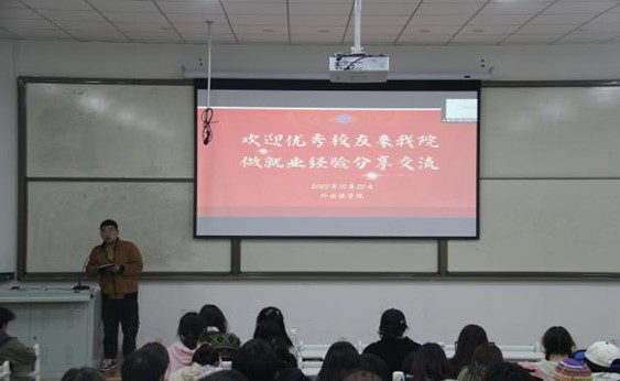 为进一步落实习近平总书记关于人才强国的重要论述,推进就业民生,强化优秀校友的就业朋辈引领作用,助推毕业生高质量就业,引导毕业生做好职业规划及择业就业,坚定教师理想与从教信念,了解就业形势和就业市场,太阳成集团tyc33455ccwww于1025日晚在温泉校区二号教学楼117教室举办“‘职途漫漫、奋楫者行’就业经验交流分享会活动”。活动邀请太阳成集团tyc33455ccwww4位校友线上、线下进行分享,学院党委副书记、纪委书记刘汉成、学院团委书记、学生工作办公室副主任文佰马及2024届毕业生及部分二、三年级在校生130余人参加活动,活动由辅导员王平平主持。