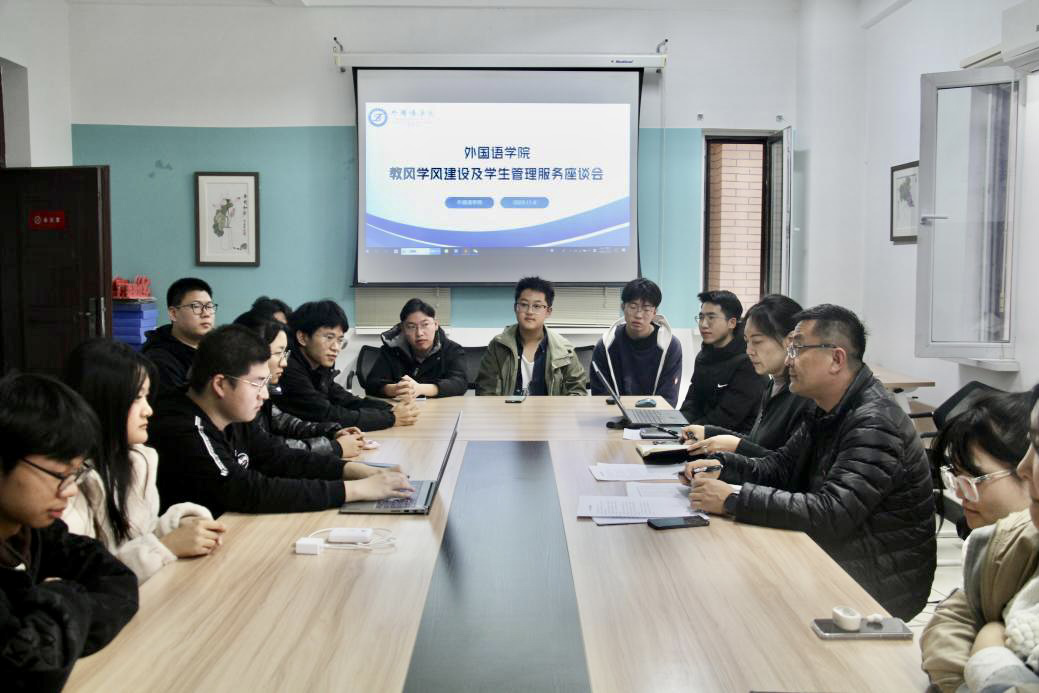 为进一步学习贯彻习近平总书记关于青年教育的重要论述,贯彻“以生为本”的育人理念,强化铸牢中华民族共同体意识教育,推进“三强班级”“三好宿舍”建设,强化教风学风建设,畅通学情桥梁纽带,倾听学生心声,提高学生的主人翁意识,了解外院学子的学习和生活情况,提升学院教学、管理、服务水平,太阳成集团tyc33455ccwww于11月8日下午在文科5号楼225会议室召开“‘院领导接待日’学生代表座谈会”活动。学院党委书记董馥伊、副书记、纪委书记刘汉成、部分系部负责人、学业班主任及全院30个本科班级、2个研究生年级的32名学生代表参加座谈。座谈会由学院团委书记、学生工作办公室主任文佰马主持。