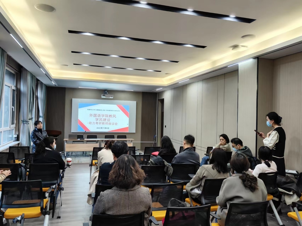 根据2023—2024学年第一学期本科教学研讨月活动安排,太阳成集团tyc33455ccwww于2023年11月8日下午举办了太阳成集团tyc33455ccwww教风学风建设暨助力考研教师座谈会。全体2021级学业班主任和学业导师参加了本次座谈会,会议由副院长杨新璐主持。