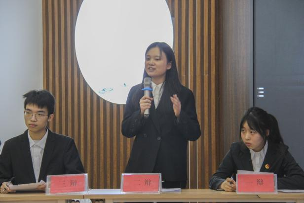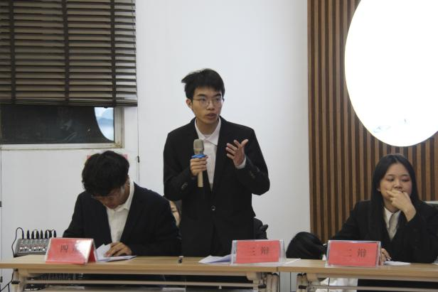 本次辩论赛共有24位选手报名,16位选手入围学院比赛,成4队2场展开两两辩论对决。首场辩论的主题是“大学生成长更应该注重学习的深度还是广度”,第二场则围绕“大学生要做‘内卷’加法还是减法”这一颇具社会关注度的话题展开。每场比赛设有开篇立论、正反对辩、正反盘问、自由辩论、总结陈词五个环节。由主持人宣读比赛规则,正反方选手进行自我介绍后,辩论赛正式开始。