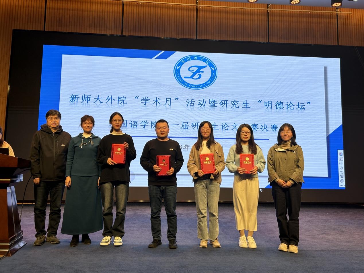 选手们的论文汇报与精彩答辩给五位评委老师留下了深刻的印象最后,21级外国语言学及应用语言学专业研究生汪瑾荣获一等奖21级外国语言学及应用语言学专业研究生刘屹存、21级课程与教学论(英语)专业研究生贺心怡荣获二等奖22级学科教学(英语)专业研究生张文燕、22级外国语言学及应用语言学专业研究生苏常越、21级外国语言学及应用语言学专业研究生王香荣获三等奖22级外国语言学及应用语言学专业研究生李晓雪、22级俄语笔译专业研究生戈勤、22级学科教学(英语)专业研究生赵长杰、22级英语口译专业研究生张雨雨荣获优秀奖。