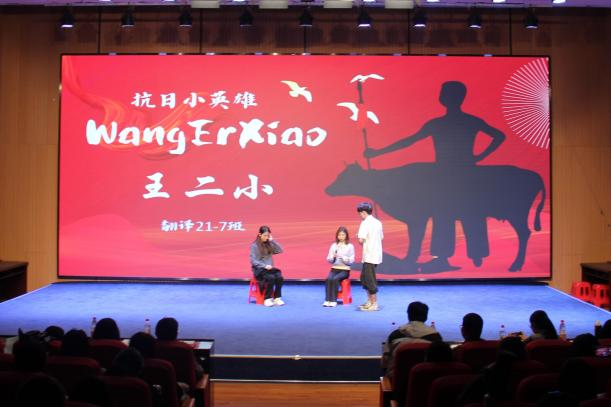 “天下兴亡,匹夫有责”。翻译21-7班演绎剧目《抗日英雄王二小》,讲述了抗日英雄王二小为了给家人报仇、为了保卫祖国而毅然踏上对抗日本侵略者道路的故事。