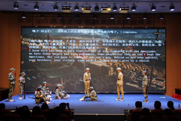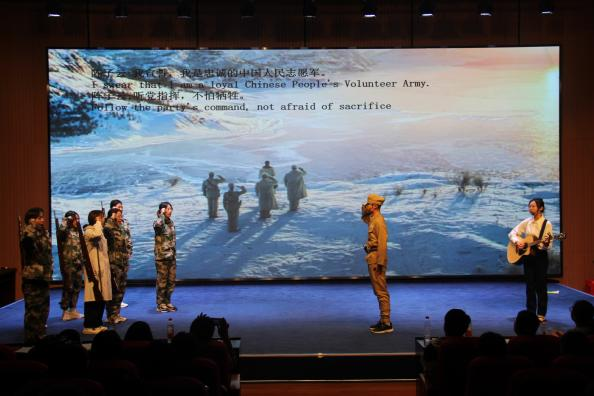 “苟利国家生死以,岂因祸福避趋之”。英语22-2班演绎的剧目《当鲜花盛开的时候》展现了志愿军战士肩负人民重托,保卫和平、反抗侵略,英勇顽强、舍生忘死的革命英雄主义精神。