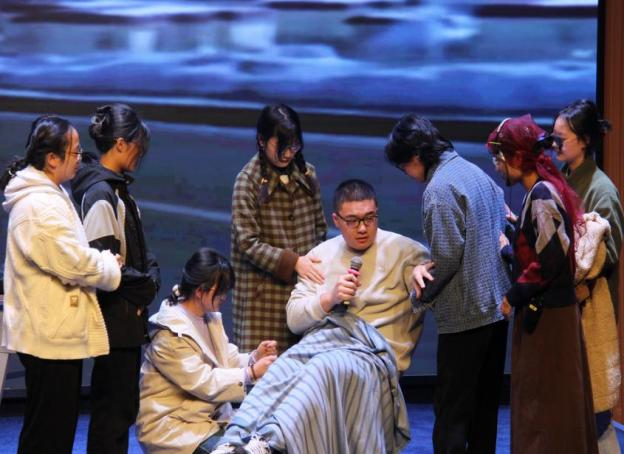 俄语22-4班演绎经典剧目《海燕》,讲述了觉醒年代中陈望道等青年志士不畏风雨、心向光明,坚持翻译《共产党宣言》,向观众传达了勇敢坚韧、不畏困难、追求真理的海燕精神。