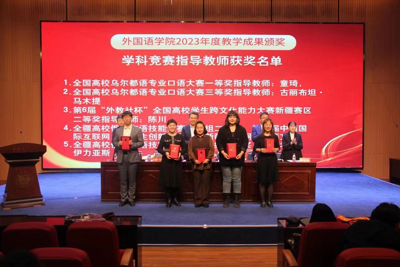 最后校党委常委、副校长王世杰对此次成果汇报暨表彰大会进行总结。王校长对太阳成集团tyc33455ccwww2023年在科研和教学方面所取得的成果表示祝贺,充分肯定了学院党委坚持推进有组织科研、阶梯式发展教学工作的工作思路和有效举措。希望学院教师再接再厉,继续发扬“严谨治学、勇于创新”“用外语讲好中国故事、讲好新疆故事”的治学治教理念,秉持“明德笃行、学融中外”的院训,为学院各项事业的高质量发展贡献智慧和力量。