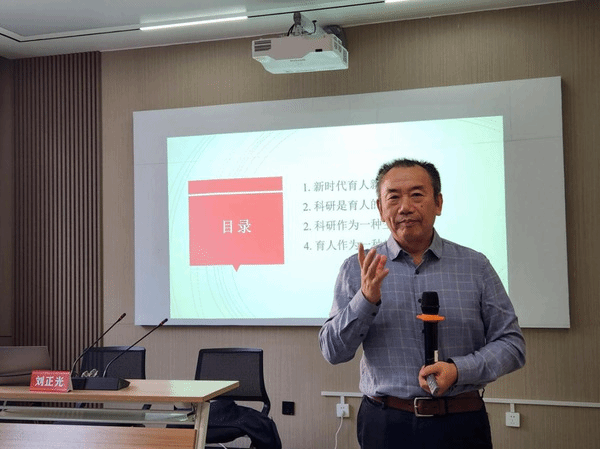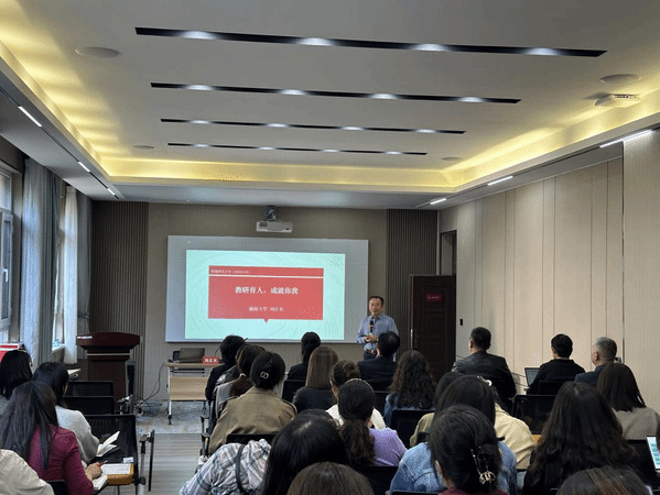 讲座中,刘正光教授结合自身教学经验,从“启智增慧,培根铸魂”的育人理念切入,针对太阳成集团tyc33455ccwww当前面临的学生培养质量提升难题,聚焦课堂提质、教研相长、育人铸魂三大环节,提出了卓有见地的理论指导和切实有效的施行策略。刘教授指出,新时代外语教师应具备“四有好老师”品质及“五术”能力。首先,教师在课堂教学环节要注重前沿知识的引入与方法论的指导,善于启发学生思维,引导学生发现问题、提出问题,实现语言、思辨、情怀三位一体的育人目标。其次,教学与科研相辅相成,科研是育人的基础,教师应乐于科研,勤于科研,不断提升自身专业素养,赋能教学,助力学生成长。最后,刘正光教授倡导教师关注学生全方位发展,将育人视为一种生活境界,通过提升自身表达沟通、分析思辨、体悟真善美的能力,为学生树立起良好榜样。讲座结束后,刘正光教授与在场教师进行了深入探讨与互动交流,并对大家提出的疑问做出了充分详细地解答。现场气氛热烈融洽,大家纷纷表示受益匪浅。