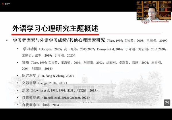 最后,学院党委书记、学术带头人刘蓉介绍了刘宏刚教授近期关于“教师韧性、学习情绪”的最新研究,并鼓励师生从外语教育心理学视角下探究“不同情境下的学习者心理因素以及教师身份与情感”,开拓外语教育与教师教育研究视野和思维。
