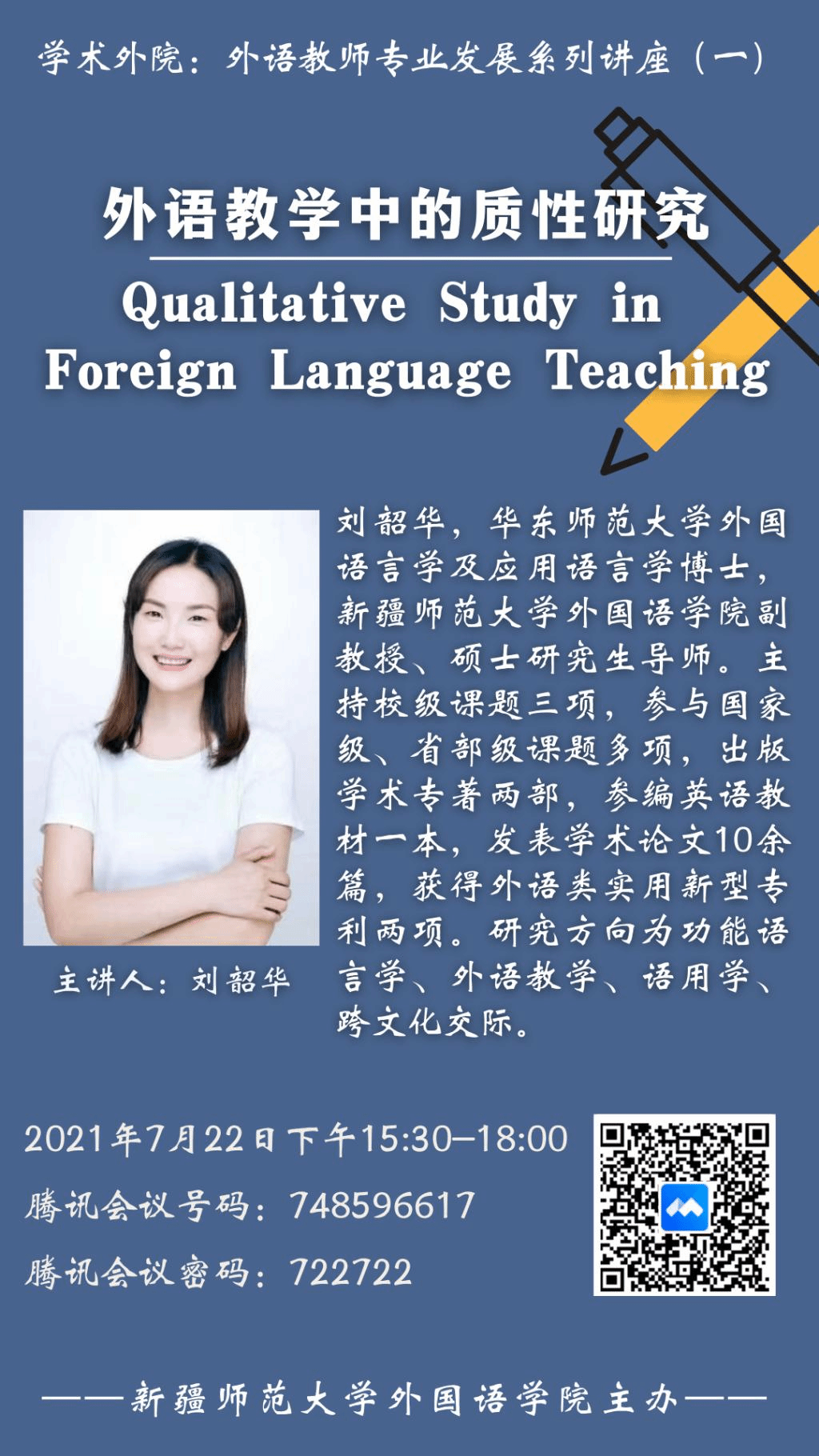 本期讲座邀请太阳成集团tyc33455ccwww教师刘韶华博士,讲座主题为“外语教学中的质性研究”。