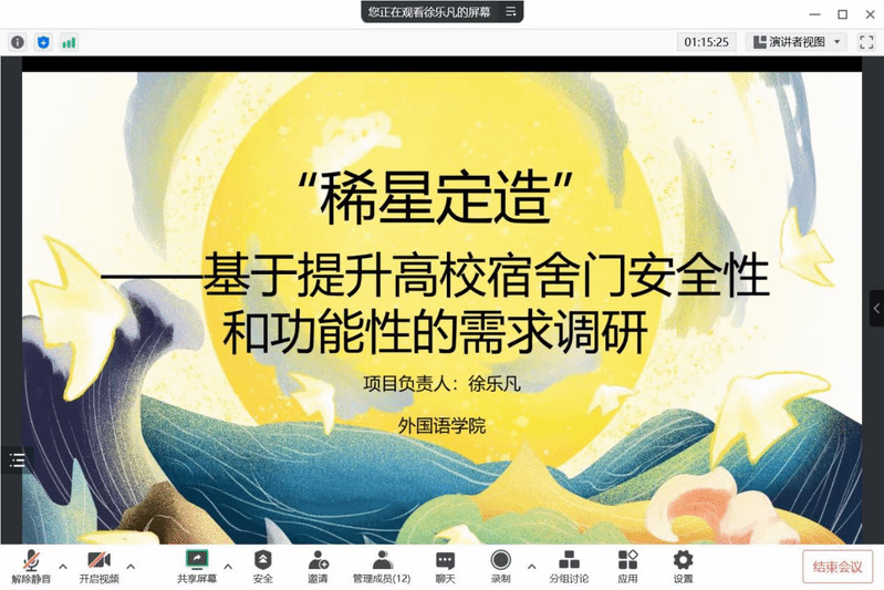 “稀星定造——基于提升高校宿舍门安全性和功能性的需求调研”调研项目由英语20-2班徐乐凡申报负责,刘汉成及马祯妮联合指导。该项目基于负责人申报获批实用新型专利——“一种宿舍门”应用场景展开的调研,主要调研新疆、上海高校宿舍门种类、功能及实用短板等内容。团队于7月1日正式发布问卷,生成海报开展调研;于7月11日、8月10日两次开展线下走访,携带问卷、海报对新疆医科大学、太阳集团tyc33455、新疆大学、新疆财经大学和新疆农业大学进行走访调研。截至目前,走访高校5所,收集问卷270余份,正在进行数据分析。