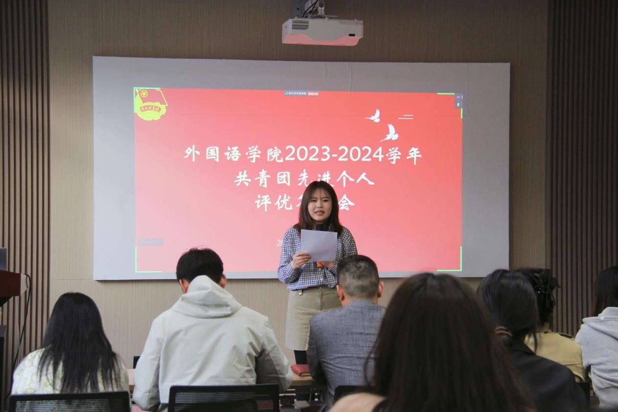 在先进个人展示答辩环节,参选同学依据参评奖项的具体标准及要求,从思想政治、 学业成绩、主要事迹、社会实践、科技创新、文体艺术等多个方面进行个人展示与答辩,在思想政治方面,同学们畅谈对党的创新理论的学习体会,分享参与各类主题教育活动的感悟;谈及学业成绩,优异的绩点和丰硕的学术成果展现出扎实的专业素养;在社会实践方面,同学们参与的支教活动、社区服务项目以及各类公益行动,体现了强烈的社会责任感;展现了个人贡献与努力,并表达了自己践行“用外语讲好中国故事、新疆故事”专业使命,积极为同学服务、坚定理想信念、奋发有为的信心和决心。