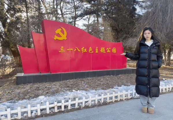 俄语24-4班孙溪唯假期期间前往阜新市三一八红色主题公园感受革命精神、学习红色文化、缅怀革命先烈。进入陵园,沿着肃穆的竹林瞻仰革命烈士纪念碑,通过展览馆中的历史照片、文物文献、烈士遗物、纪念建筑和革命影片展示,她仔细了解了家乡当地在革命战争时期的独特的革命文化,感悟先烈伟大精神,同时更加坚定了自己用俄语宣传家乡文化的决心。