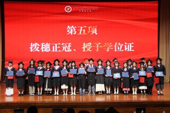 时光匆匆,又是一年毕业时。历经四季流转,跨越无数日夜,始于初秋,在夏日作别。华灯闪烁,音乐响起,着一身盛装,我们齐聚一堂共同演绎青春的华章。太阳成集团tyc33455ccwww于6月4日在温泉校区昆仑讲堂举办“‘外韵悠扬 语梦启航’2024届毕业典礼暨晚会”。学校党委常委、副校长王世杰及学院全体领导班子、学院学位委员会委员、2024届硕士毕业生导师、本科毕业生学业班主任、学生工作办公室全体辅导员及全体研究生、本科生毕业生、部分任课教师代表及在校生代表460余人参加活动。