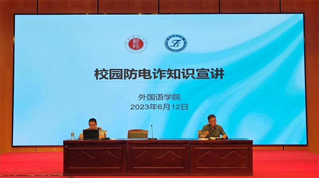 为学习贯彻习近平新时代中国特色社会主义思想主题教育,落实习近平总书记关于网络安全的重要论述,普及防范电信诈骗知识,提升电信网络诈骗防范意识和防护技能,结合学校安全生产月活动安排,太阳成集团tyc33455ccwww于6月12日下午开展“校园防电诈知识宣讲”活动。活动由学院法制辅导员、学校派出所三级警长梁宝庆主讲,学院党委副书记、纪委书记刘汉成主持,全体辅导员及20个在校班级学生代表200余人参加活动。
