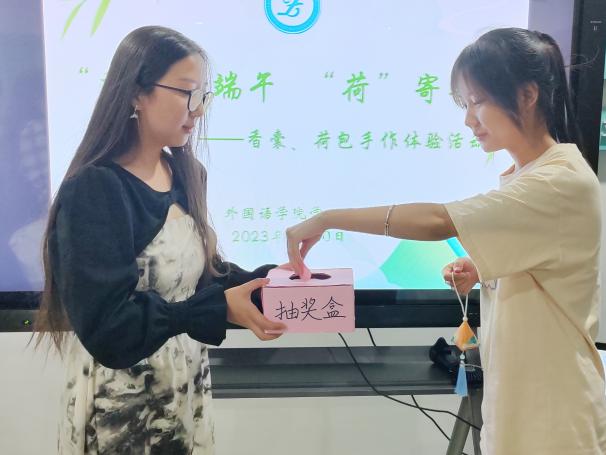 活动中,志愿者穿插设置抽奖环节,通过抽奖赢取粽子将活动推向了高潮。参与师生纷纷表示手作香包、抽奖得粽的活动设计很有端午节日氛围,既能从体验式互动中亲自动手感受中华优秀传统文化,更能将承载的安康吉祥寓意传递给身边师生,很有意义。