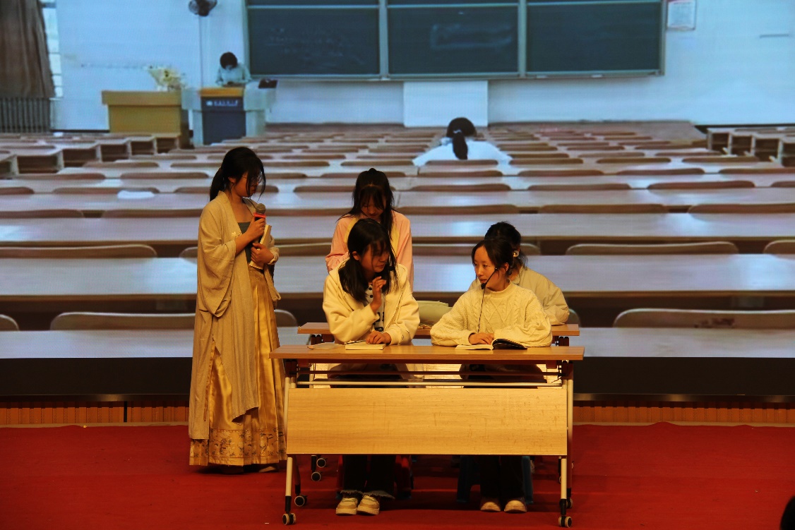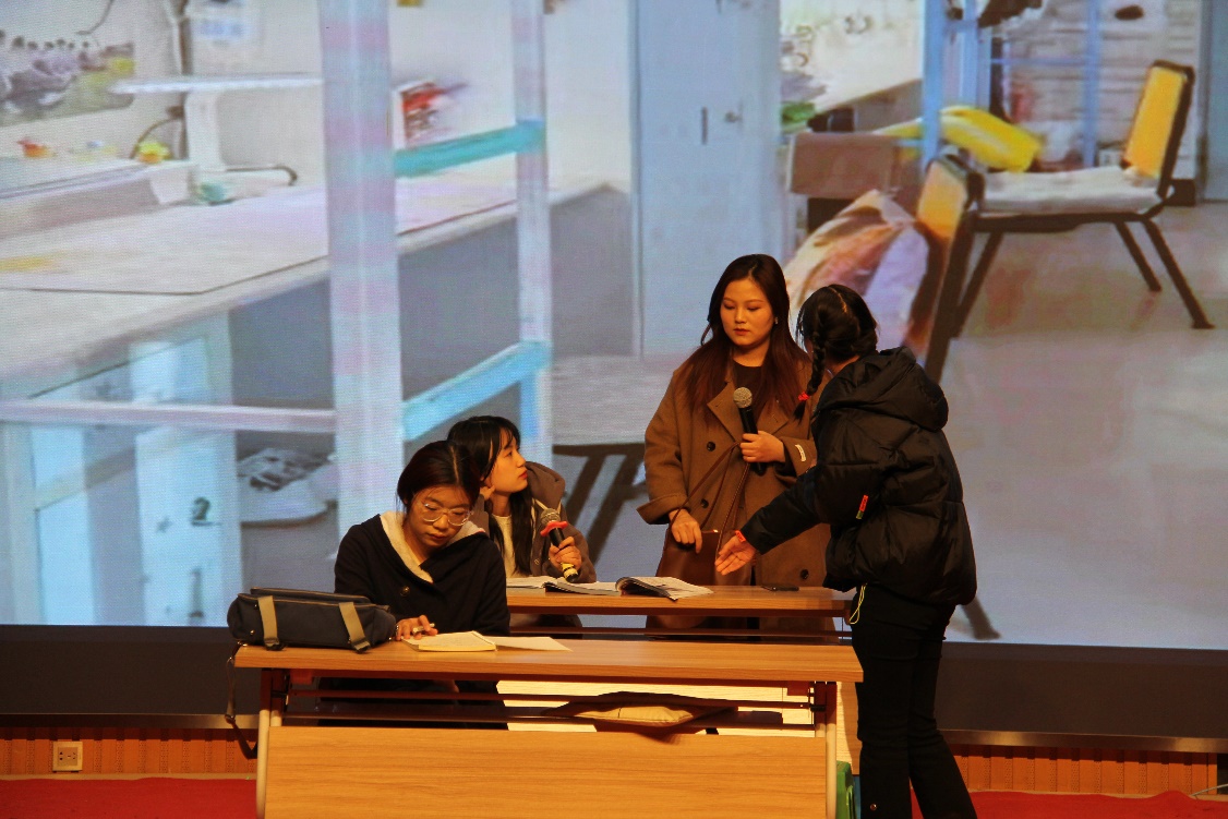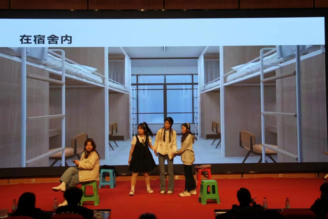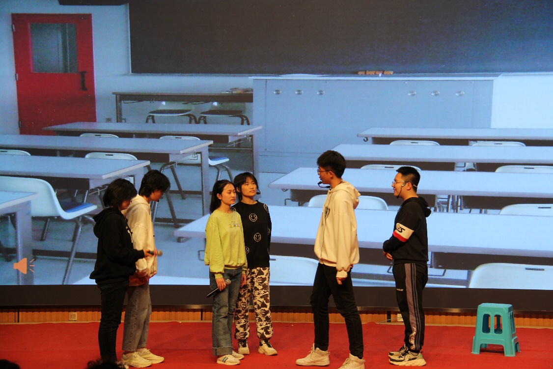 经学院前期宣传培训,共有17个班级提交剧本。通过对剧本剧情完整度、舞台效果、生活场景、教育意义等方面的评选选拔,其中7个剧目入围学院决赛。参赛剧目取材来源于大学学习生活,聚焦“三强班级”“三好宿舍”达标创建和学风院风建设,以课堂、宿舍、操场、食堂为场景,围绕人际关系、网络暴力、虚荣心、恶意内卷等成长困惑与迷茫,融入外语学习、兴趣课、专业四级八级辅导考试等元素,演绎身边人、身边事。演员们动情演绎,塑造了一个个鲜活的形象,生动呈现出生活中的情感冲突,将彷徨、矛盾、感悟与成长贯穿整个演出过程。现场观众时而开怀大笑,时而共情悲伤,时而感同身受,时而义愤填膺,大家的情绪随着剧情的跌宕起伏不断变换。