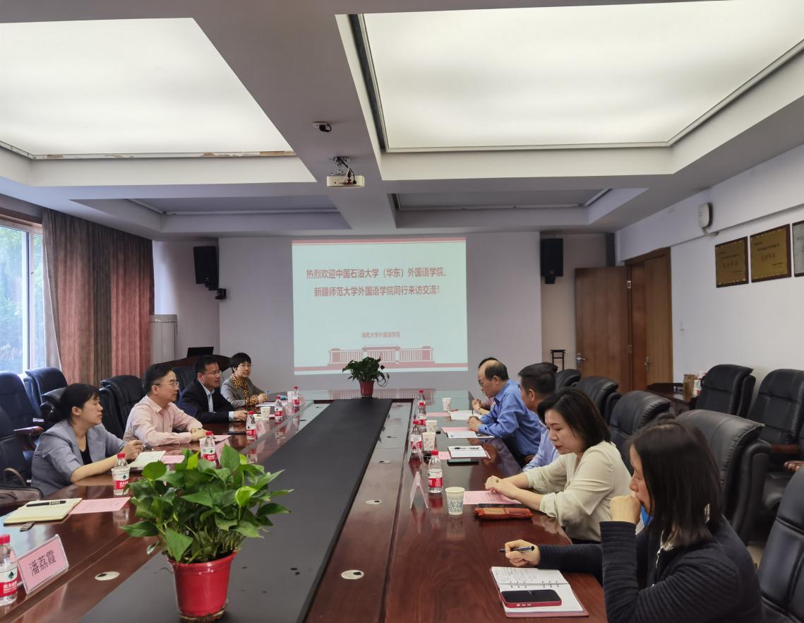 4月14日上午,太阳集团tyc33455外国语语学院副院长杨新璐、英语专业负责人郑琴前往湖南大学太阳成集团tyc33455ccwww,与同时到访的中国石油大学(华东)太阳成集团tyc33455ccwww党委书记朱惠平、院长毛浩然一行,共同座谈交流。湖南大学外国语党委书记徐军、学院院长莫再树、副院长于海玲、任远,办公室主任谭晓梅参加座谈会。与会三方围绕专业建设、人才培养、科研团对建设进行交流探讨,希望形成更切实深入的合作。