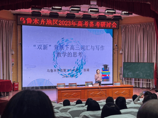 4月10日,在乌鲁木齐市第68 中学举办了“2023年乌鲁木齐市高考备考研讨会”。乌鲁木齐市教研中心教研员蔡蓉、第68中学英语学科教师许明虎分别以《高三英语试卷之阅读讲评》、《基于‘线索信息’突破高考完形填空》为题做教学实践展示。乌鲁木齐市第一中学教师任琦和第20中学教师张靖分别做题为《高考备考中语篇意识的培养——从高频错题看备考策略》、《“双新”背景下高三词汇与写作教学的思考》讲座。