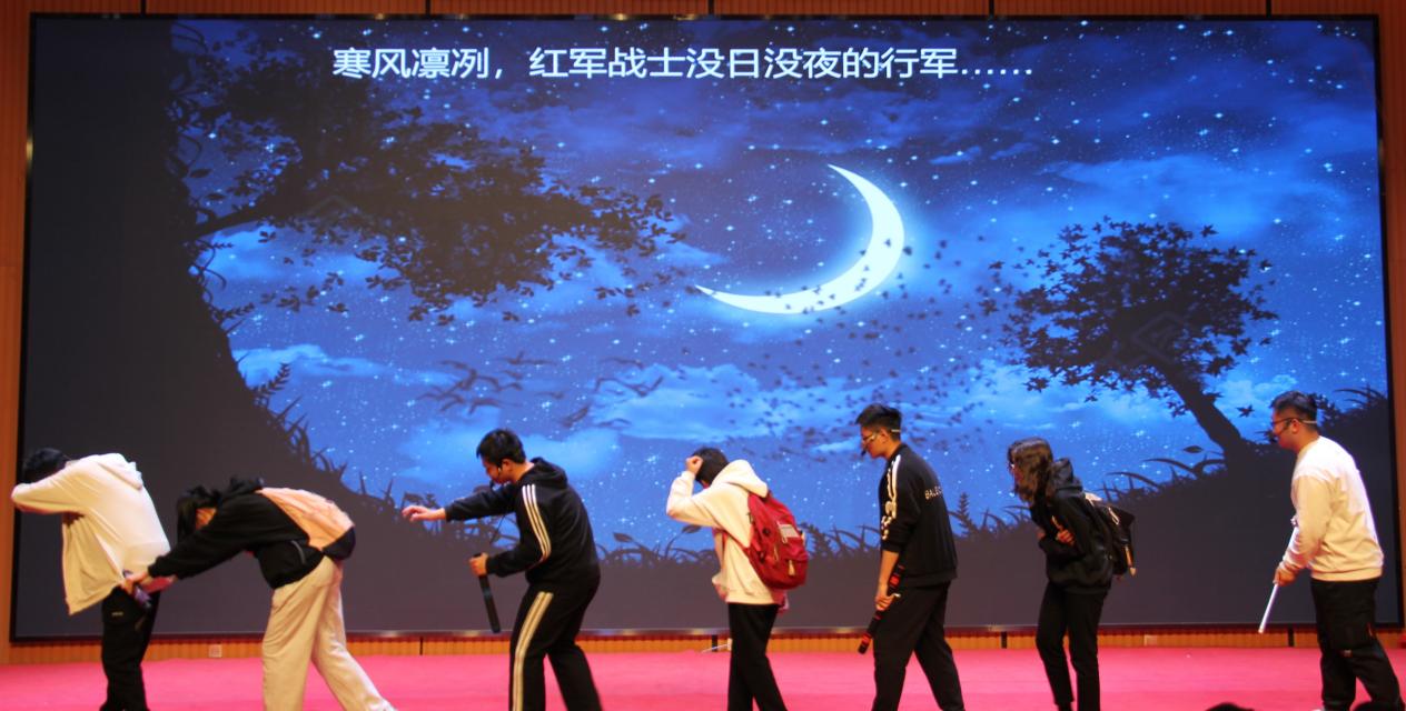 战火纷飞的战争时代,有一群人坚持革命信仰,誓死捍卫民族独立,英语21-2班所演绎的《人间正道是沧桑》淋漓尽致地展现了中华民族不屈不挠、誓死抗争的英雄气概。