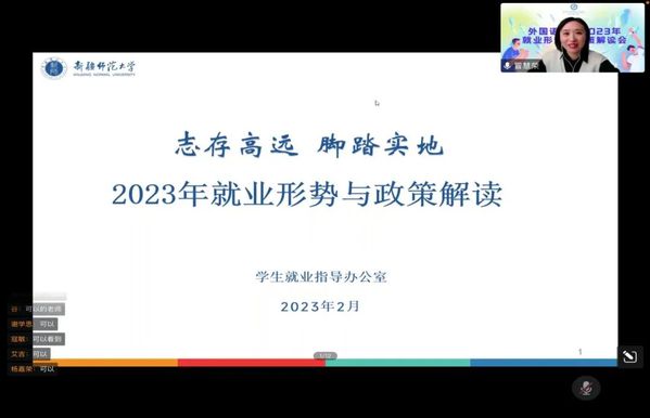 为进一步推进毕业生就业工作,落实教育部2023届全国普通高校毕业生就业创业工作网络视频会议精神,帮助毕业生了解就业形势、用好就业政策,准确把握当前用人单位人才招聘需求,提高毕业生求职择业积极性、主动性,2月15日下午,太阳成集团tyc33455ccwww举办“2023年助就业系列活动——就业形势与政策解读”专题讲座,特邀学校就业指导中心指导服务科冒慧荣主讲,学生工作办公室古丽福子·艾尼瓦主持,学院党委副书记刘汉成及全体毕业班学业班主任、研究生、本科生毕业生参加活动。