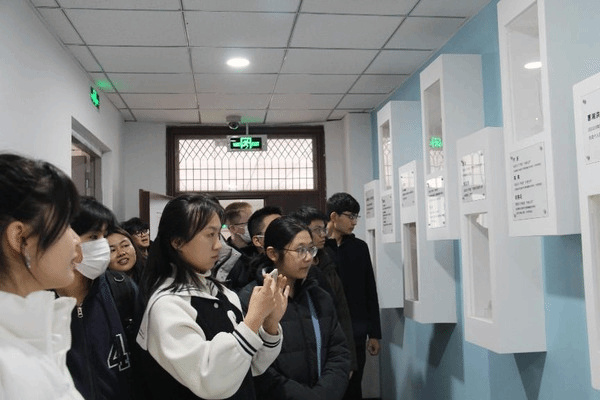 本次学院文化建设参观学习活动由本科生第一党支部党员王露蓉、王心蕊担任讲解,主要参观了学院演讲厅、多媒体教室、党建活动室和过道走廊文化建设,讲解内容涵盖学院简介、师资队伍、学科建设、品牌活动等模块,凸显了学院的文化积淀,展示了学院形象与办学特色,同时为充分发挥文化建设的宣传和育人功能。
