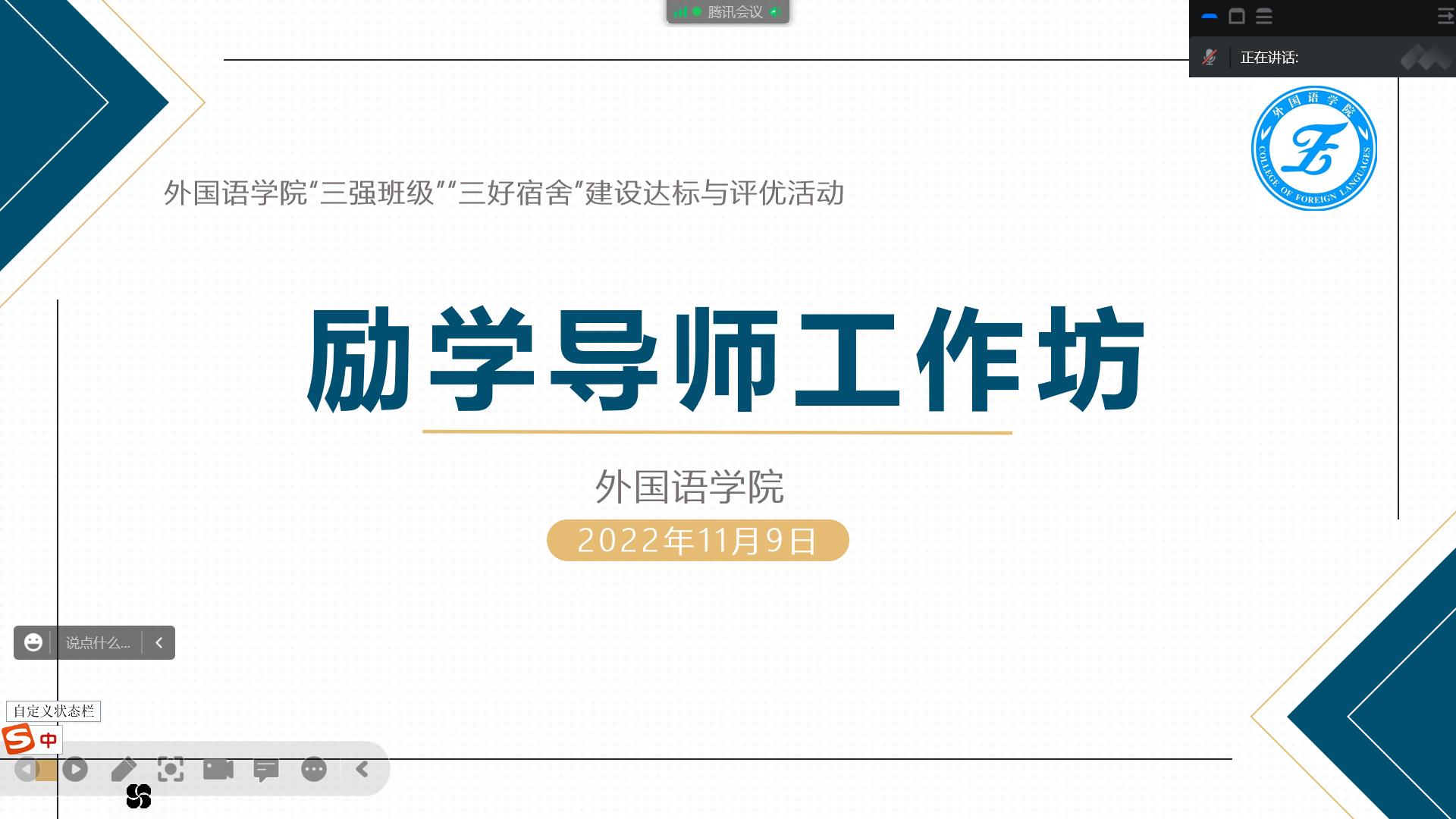 为深入推进落实学校党委关于“三强班级”“三好宿舍”建设达标与评优活动的相关要求,深化学风建设,进一步丰富学生精神文化生活,太阳成集团tyc33455ccwww党委于2022年11月9日在线上举办“励学导师工作坊”第二期活动。