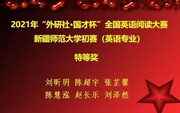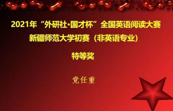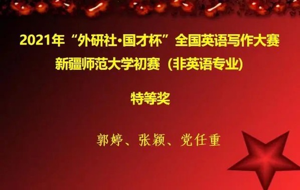 10月22日收到大赛组委会的反馈,全校共有14位同学分获得写作、阅读校级特等奖,其中排名第一的英语专业和非英语专业的选手将代表我校参加自治区级写作、阅读大赛。