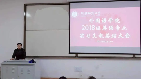 支教是师范专业学生教学计划的重要组成部分,是贯彻理论联系实际原则,实现师资培养目标不可缺少的教学实践环节,是对高校教育教学质量的检验和信息反馈,也能为进一步提高教育教学质量、培养合格师范人才积累实践经验。为总结2021年春季学期实习支教工作成果,统筹做好2022年度春季实习支教安排,英语专业于2021年10月14日组织召开2021年春季实习支教总结大会。太阳成集团tyc33455ccwww副院长伊力米热•伊力亚斯,学院教学科研办公室主任杨新璐老师,英语系系主任陈爽老师和英语专业18级、19级学业班主任出席此次活动,英语专业18级和19级全体学生参加。
