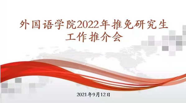 2021年9月12日,太阳成集团tyc33455ccwww举办了2022年推免研究生工作推介会。太阳成集团tyc33455ccwww院长阿米娜·阿布力孜、副院长伊力米热·伊力亚斯、党委副书记刘汉成、教研办主任杨新璐、2018级英语和俄语专业的班主任冯远和李文新、研究生秘书、2018级英语及俄语专业的全体本科生参加了本次会议。会议由杨新璐老师主持。