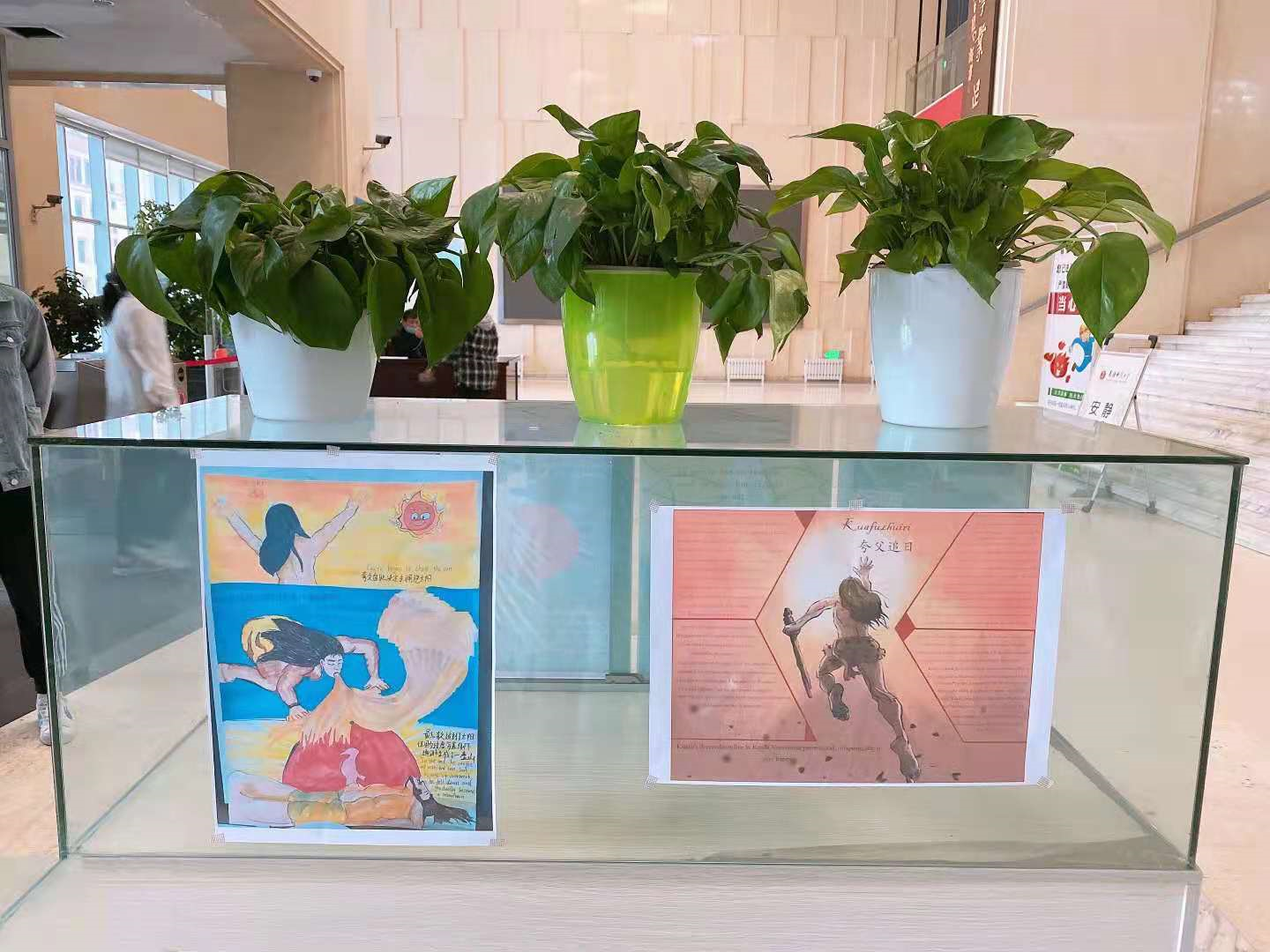 绘画作品“精卫填海”、“夸父追日”展现了大学英语教学部“中华文化进课堂”教学实践成果——结合课堂学习内容,非英语专业学生通过绘画作品讲述中国神话故事。作为学院“用外语讲好中国故事”学习与实践活动之一,提升学生传承传播中华文化能力,深化中华文化价值认同,增强文化自觉自信。