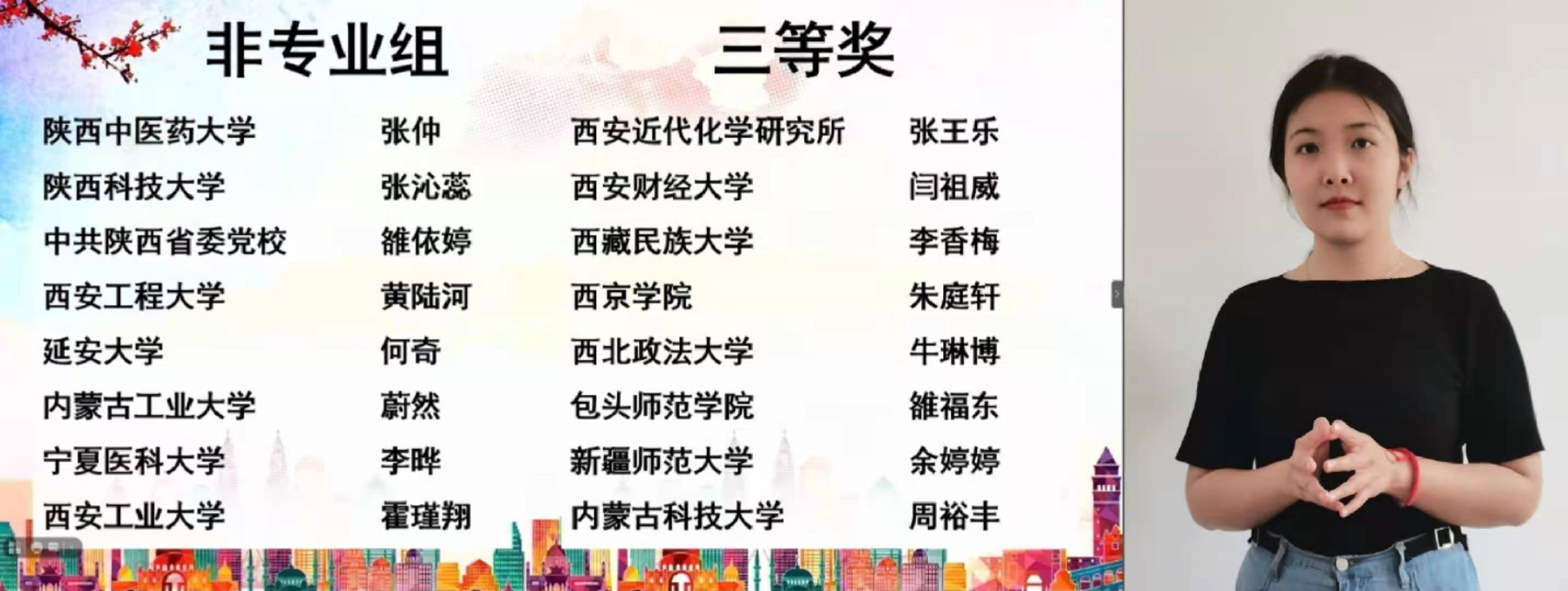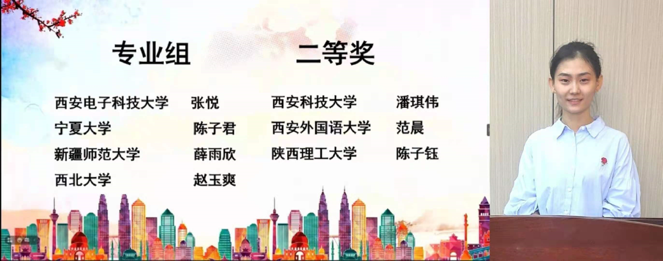 2021年西北地区第七届研究生英语演讲比赛暨陕西省第十三届研究生英语演讲比赛由陕西省学位与研究生教育学会、教育部学位与研究生发展教育中心《中国研究生》编辑部主办,西北电子科技大学和陕西省研究生英语外语教学研究会承办,共有来自陕西、甘肃、青海、新疆、宁夏、内蒙古五个省、自治区的57所高校的83名学生分为专业组和非专业组的比赛。在决赛中我校邹彬老师指导的太阳成集团tyc33455ccwww的薛雨欣同学,陈川老师指导的政法学院的余婷婷同学分别荣获专业组二等奖、非专业组三等奖。