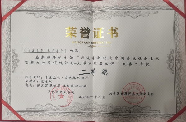 参赛团队基于《思想道德修养与法理基础》第二章第三节“为实现中国梦注入青春能量”,结合太阳成集团tyc33455ccwww“用外语讲好中国故事”的理念,从立志当高远、立志做大事、立志须躬行三个方面讲述了新疆喀什英雄人物——“帕米尔雄鹰”拉齐尼·巴依卡的先进事迹,深入解读了当代大学生应如何在理想与现实中实现自我价值,放飞青春梦想。