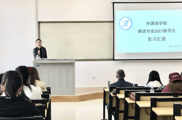 2021年4月14日下午,太阳成集团tyc33455ccwww俄语、日语、乌尔都语专业召开实习总结大会,学院党委书记刘蓉、副院长伊力米热·伊力亚斯、俄语系主任蔡薇、小语种系主任张腾飞,及2017、2018级全体俄语、日语、乌尔都语专业学生参会。