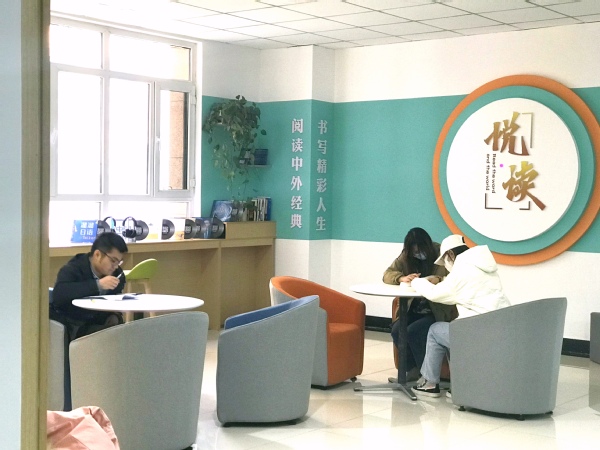 美丽宽敞的读书吧里,他们读书、自习、交流、分享,感悟阅读的魅力和喜悦。
