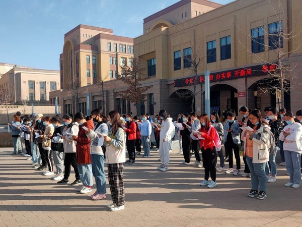 清晨的暖阳下,呼吸着新鲜的空气,外院学子让校园里书声琅琅。