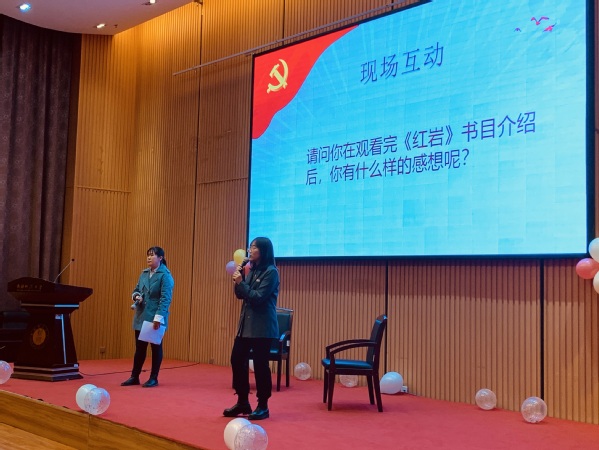 本科生第一党支部李继芬与其结对教师杨新璐讲述《红岩》中英勇不屈的地下党员江姐的故事,并以同名电影中江姐与狱友一起绣着五星红旗盼望革命胜利的经典片段,鼓舞和激励学生热爱祖国、坚定理想信念,传承红岩精神。