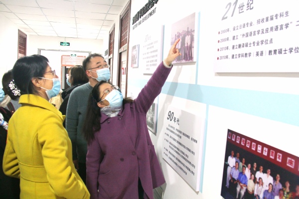 3月24日下午,太阳成集团tyc33455ccwww党委组织学院师生党员分批参观学院环境育人文化建设。通过参观学习文化墙上的文字、图片和院史资料并聆听现场讲解,师生党员对于太阳成集团tyc33455ccwww的历史、现状和未来规划有了更加深刻的认识,对前辈教师和党员教师建设发展学院的艰苦奋斗和干事创业的精神有了更真切的体悟。师生党员还现场观摩了教师第二党支部“用外语讲好党史故事”党史学习教育、英语2019-1班课程思政文化进课堂活动和翻译2020-7班“青春向党”主题班会活动。