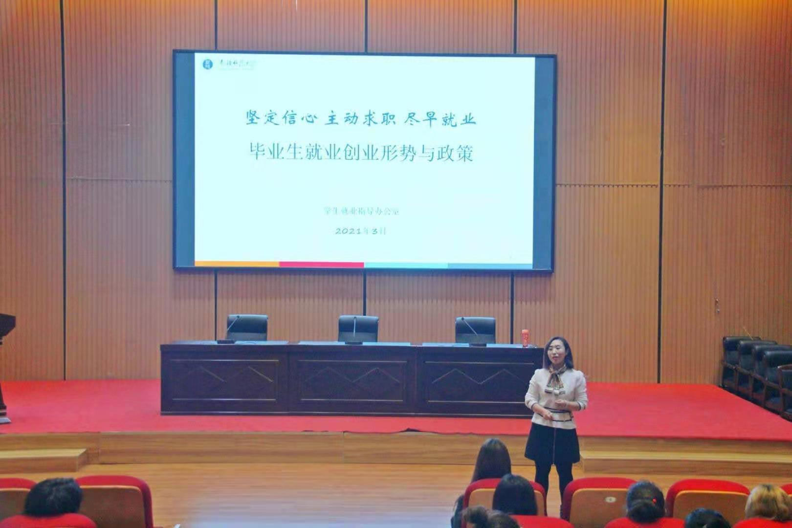 此次讲座增进太阳成集团tyc33455ccwww2021届毕业生对当前就业形势以及国家、自治区就业扶持政策的认识与了解,帮助同学们理性分析当前就业形势,做出正确择业判断,做好从校园走向社会,从学习走向工作的心理准备和角色转变。