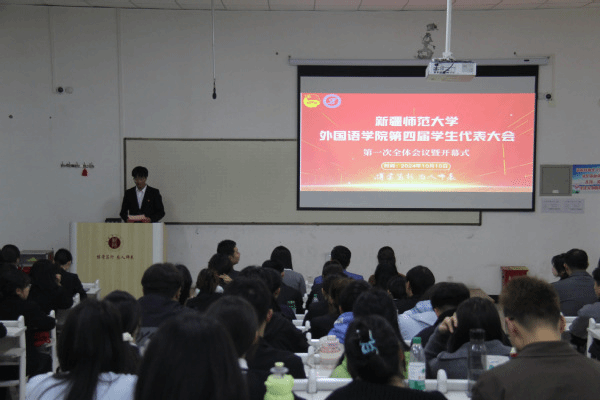 会议伊始,全体师生起立高声齐唱国歌。随后,学院党委书记董馥伊致辞,充分肯定了研究生会、学生会过去一年取得的成绩,向辛勤付出的学生代表们表达了谢意,同时号召广大学生代表落实习近平总书记嘱托:坚定理想信念、勇担时代使命;加强外语学习实践,练就过硬本领;坚持服务初心,认真履职尽责,努力成为爱国爱疆、专业扎实、担当奉献的新时代“小胡杨”,践行外语专业使命,讲好中国故事,讲好新疆故事。