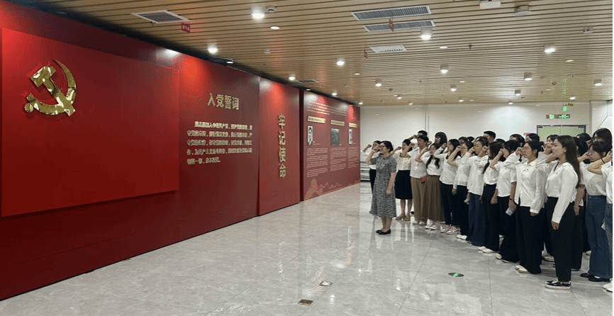 面向鲜红的党旗,全体党员庄严举起右手,重温入党誓词,铿锵誓言表达了对党忠诚、为共产主义事业奋斗终身的坚定信念。