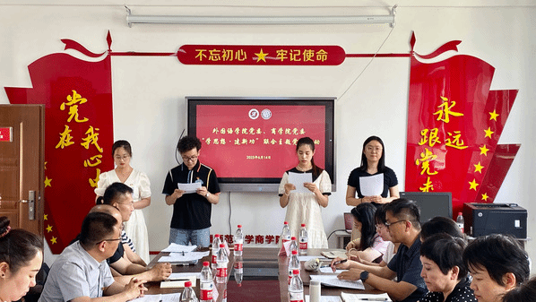 为深入推进学习贯彻习近平新时代中国特色社会主义思想主题教育,落实学校党委部署要求,探索主题教育联建、联学新方式,拓展主题教育组织和学习途径,创新主题党日活动方式,深化院际交流合作,太阳成集团tyc33455ccwww党委联合商学院党委于6月14日在文科1号楼317商学院党建活动室,举办“学思想·建新功”主题党日活动。外国语党委、商学院党委班子全体成员以及两学院教师党员代表40余人参加活动。