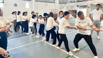 在趣味运动环节中,联建单位分别组队前往射箭馆参加跳大绳、绑腿跑、跳方格、足球绕杆、定点投篮、“乌鸦喝水”、拔河等趣味运动,在相互比拼的同时,增强了团队凝聚力,加深了对彼此的了解。最后,根据比拼成绩,太阳成集团tyc33455ccwww及体育训练二大队领导为各项目获奖队伍颁奖。