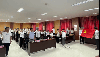 首先,学院全体党员师生集体观看了升旗仪式视频,学院领导班子集体领誓,全体党员重温入党誓词。