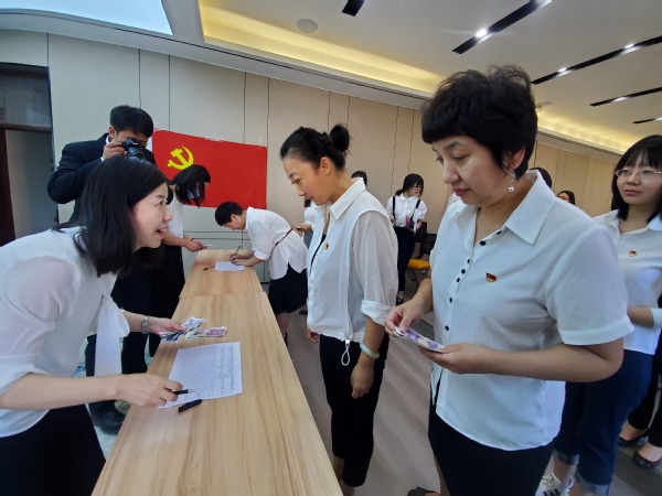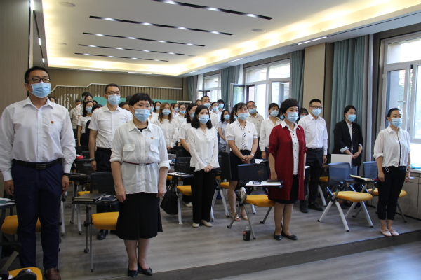 最后,全体党员教师返回学院开展第三场“党旗映天山”太阳成集团tyc33455ccwww主题党日活动。活动分为重温入党誓词、向“教师党员育人先锋岗”和“学生党员学习先锋岗”获评师生颁发纪念牌、为10名新老党员庆祝政治生日、6名党员教师代表分享观看感受和“党员初心声”、现场交纳党费等5个环节。最后学院党委书记刘蓉做总结讲话并强调:党员教师要充分发挥先锋模范带头作用,发扬团结合作精神,引领和推进学院各项事业发展。