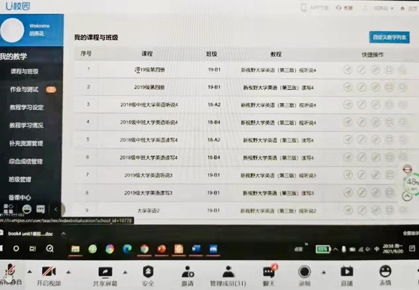 吴曦老师以自治区级“一流本科课程”《综合英语》为例,介绍了“一流本科课程”申报的具体要求、程序和注意事项,以及以“深度学习”为导向的《综合英语》课程设计、目标确立与监控评价的手段和措施;胡燕花老师以自治区级“一流本科课程”《大学英语》为例,重点分享了以“ Unipus”、“iSmart”为依托的网络教学平台与课程资源建设的经验和成果。
